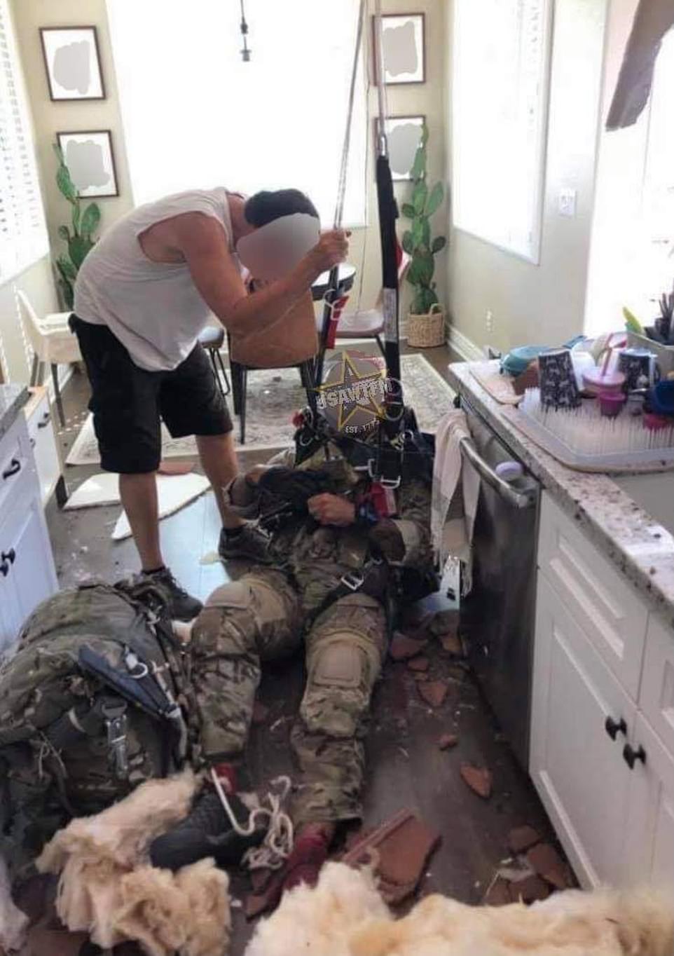 Từ độ cao 4.500 mét, binh sĩ Anh rơi xuyên thủng mái nhà dân Mỹ. Do hệ thống dù gặp trục trặc trong khi huấn luyện ở California, một binh sĩ Anh đă rơi xuyên qua mái nhà dân xuống pḥng bếp. Nhưng may mắn điều xảy ra sau đó khá kỳ lạ.