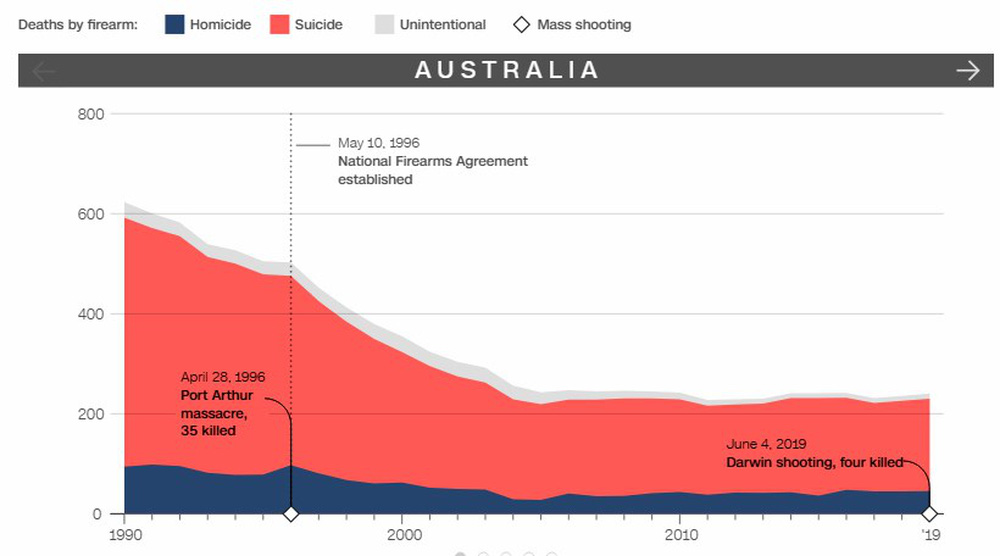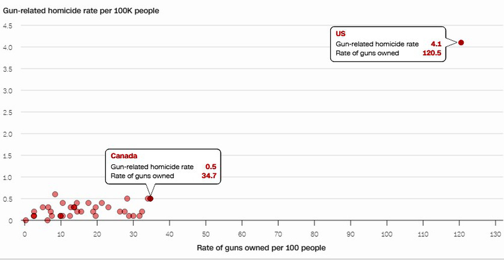 T́nh trạng bạo lực súng đạn phổ biến ở Mỹ đă khiến không ít người bị tổn thương trong nhiều thập kỷ qua. Nhưng nhiều người Mỹ vẫn bảo vệ quyền mang vũ khí của họ, quyền này cũng được ghi trong Hiến pháp Mỹ là bất khả xâm phạm. Tuy nhiên, những ư kiến trái chiều cho rằng, quyền sử dụng súng đang đe dọa một quyền khác: Quyền được sống. Mối quan hệ của nước Mỹ đối với quyền sở hữu súng là duy nhất và văn hóa sử dụng súng của nước này là một ngoại lệ toàn cầu. Khi con số tử vong liên quan đến súng tiếp tục tăng lên hàng ngày, đây là một cái nh́n tổng quan về văn hóa sử dụng súng ở Mỹ so với phần c̣n lại của thế giới. So sánh quyền sở hữu súng trên toàn cầu Mỹ là quốc gia duy nhất trên thế giới có số lượng vũ khí cá nhân (vũ khí thuộc sở hữu cá nhân) đông hơn số dân. Theo Cơ quan Khảo sát Vũ khí nhỏ (SAS) có trụ sở tại Thụy Sĩ, cứ 100 người Mỹ th́ có 120 khẩu súng. Không quốc gia nào có nhiều vũ khí cá nhân hơn số dân như ở Mỹ. So sánh cho thấy sự chênh lệch lớn về tỷ lệ sở hữu súng tại Mỹ và Quần đảo Falkland- nơi có kho vũ khí cá nhân tính theo đầu người lớn thứ hai thế giới. Ảnh: CNN. Quần đảo Falkland - một vùng lănh thổ của Anh ở Tây Nam Đại Tây Dương, do Argentina tuyên bố chủ quyền và là đối tượng của cuộc chiến năm 1982 - là nơi có kho vũ khí cá nhân tính theo đầu người lớn thứ hai thế giới. Nhưng với ước tính 62 khẩu súng trên 100 người, tỷ lệ sở hữu súng của nước này cũng chỉ bằng gần một nửa so với Mỹ. Yemen - quốc gia đang hứng chịu cuộc xung đột kéo dài 7 năm - có tỷ lệ cá nhân sở hữu súng cao thứ ba với 53 khẩu trên 100 người. Trong khi để thống kê chính xác số lượng vũ khí cá nhân là rất khó do nhiều yếu tố, bao gồm vũ khí chưa đăng kư, buôn bán bất hợp pháp và xung đột toàn cầu, các nhà nghiên cứu của SAS ước tính rằng, người Mỹ sở hữu 393 triệu trong số 857 triệu vũ khí cá nhân hiện có, chiếm khoảng 46% số súng dân dụng trên thế giới. Thảm kịch trên phim trường Mỹ: Làm thế nào súng đạo cụ có thể bắn chết người? Theo một cuộc khảo sát của Gallup vào tháng 10/2020, khoảng 44% người trưởng thành ở Mỹ sống trong một hộ gia đ́nh có súng và khoảng 1/3 sở hữu một khẩu súng. Theo Giáo sư Zachary Elkins tại Đại học Texas ở Austin, một số quốc gia có tỷ lệ sở hữu súng cao do trữ lượng bất hợp pháp từ các cuộc xung đột trong quá khứ hoặc hạn chế lỏng lẻo về quyền sở hữu, nhưng Mỹ là một trong ba quốc gia trên thế giới, quyền sở hữu súng được quy định trong Hiến pháp. Tuy nhiên, so sánh tỷ lệ sở hữu súng ở hai quốc gia c̣n lại là Guatemala và Mexico, tỷ lệ chỉ gần bằng 1/10 của Mỹ. Tuy nhiên, Giáo sư Elkins cho rằng, những tranh căi về súng ở những quốc gia này ít bị chính trị hóa hơn. Trái ngược với Mỹ, hiến pháp của Guatemala và Mexico tạo điều kiện thuận lợi cho việc điều chỉnh, các nhà lập pháp có thể dễ xoay chuyển hơn nếu muốn hạn chế súng, đặc biệt là do lo ngại về tội phạm có tổ chức. Ở Mexico, chỉ có một kho súng duy nhất trên toàn quốc và do quân đội kiểm soát. Ở Mỹ, việc chế tạo súng đang gia tăng khiến nhiều người Mỹ mua súng hơn. Theo Cục quản lư Rượu, Thuốc lá, Súng và Chất nổ Mỹ (ATF), năm 2018, các nhà sản xuất súng đă sản xuất 9 triệu khẩu súng tiêu thụ trong nước - nhiều hơn gấp đôi so với số lượng sản xuất trong năm 2008. Gần đây hơn, tháng 1/2021 đánh dấu mức tăng hàng năm lớn nhất kể từ năm 2013 về yêu cầu kiểm tra lư lịch liên bang cần thiết để mua súng - tăng gần 60% so với tháng 1/2020. Và vào tháng 3/2021, FBI đă báo cáo gần 4,7 triệu lượt kiểm tra nhân thân - nhiều nhất trong bất kỳ tháng nào kể từ khi cơ quan này bắt đầu theo dơi từ hơn 20 năm trước. Hai triệu trong số đó dành cho việc mua súng mới, khiến đây là tháng cao thứ hai trong kỷ lục về doanh số bán súng, theo Liên đoàn Thể thao Bắn súng Quốc gia. Từ năm 2019, tỷ lệ người chết liên quan đến súng ở Mỹ cao gấp 8 lần so với Canada. Ảnh: CNN. Mỹ có tỷ lệ người chết v́ súng cao nhất trong các nước phát triển Năm 2019, số người chết v́ bạo lực súng đạn ở Mỹ là khoảng 4/100.000 người. Con số này cao gấp 18 lần tỷ lệ trung b́nh ở các nước phát triển khác. Nhiều nghiên cứu cho thấy, việc tiếp cận với súng góp phần làm tăng tỷ lệ các vụ giết người liên quan đến súng. Trong khi đó, theo một cuộc khảo sát vào tháng 4/2021 của Trung tâm nghiên cứu Pew, gần 1/3 số người trưởng thành ở Mỹ tin rằng, sẽ có ít tội phạm hơn nếu nhiều người sở hữu súng hơn. Tuy nhiên, nhiều nghiên cứu cho thấy rằng, ở những nơi mọi người dễ dàng tiếp cận với súng, các ca tử vong liên quan đến súng có xu hướng xảy ra thường xuyên hơn, bao gồm cả do tự sát, tội phạm và thương tích không chủ ư. Không có ǵ ngạc nhiên khi Mỹ có n