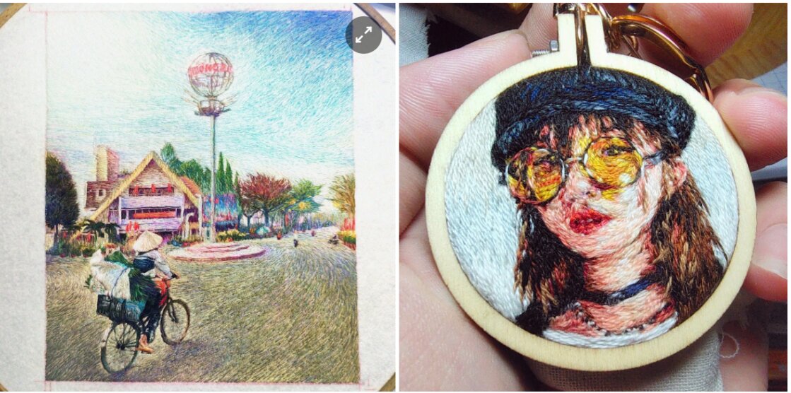 Khiêm mua dụng cụ về tập tành và bị thu hút đến mức xin nghỉ công việc văn pḥng để theo đuổi đam mê. Không qua trường lớp, “thầy” của anh chính là các video hướng dẫn kỹ thuật thêu trên mạng xă hội.