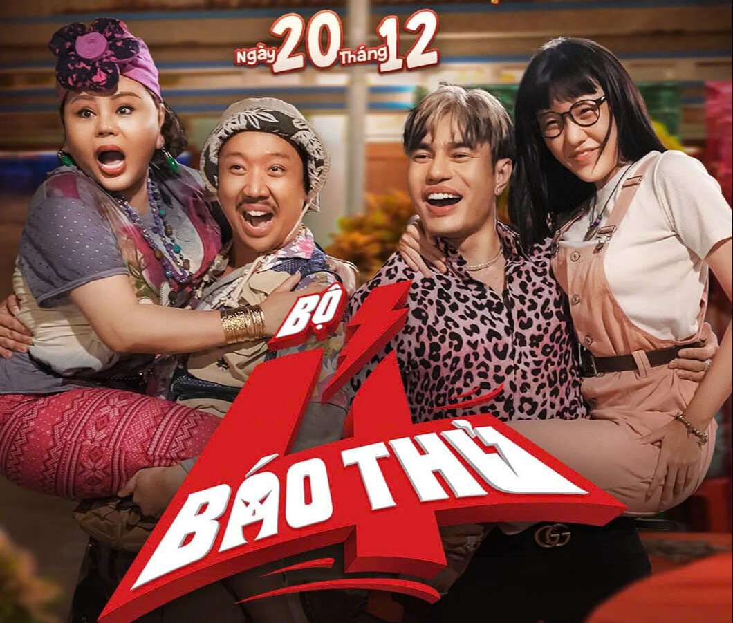 Ảnh từ trái sang: Lê Giang, Trấn Thành, Lê Dương Bảo Lâm và Uyển Ân trong Bộ tứ báo thủ. Ảnh: NSX