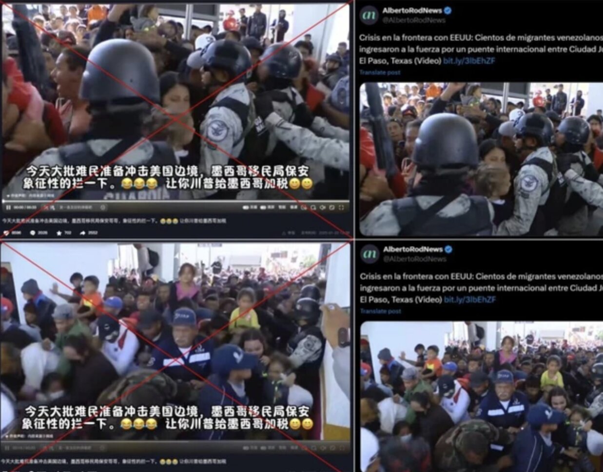 "Một lượng lớn người tị nạn đă sẵn sàng tràn vào biên giới Mỹ hôm nay, trong khi lực lượng an ninh Mexico chỉ ngăn cản họ một cách h́nh thức", phụ đề bằng tiếng Trung Quốc trong một video trên nền tảng chia sẻ video ngắn Douyin (Tiktok phiên bản Trung Quốc) được đăng tải vào ngày 22/1/2025 viết.