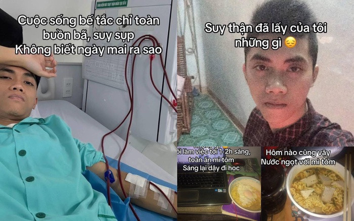 Mới đây, trên mạng xă hội đang rầm rộ chia sẻ các bài viết của một Tiktoker với tên gọi “Hoàng Nguyễn Chạy Thận”. Chủ nhân tài khoản này chia sẻ câu chuyện mỗi ngày của chính bản thân ḿnh - một nam thanh niên phát hiện mắc bệnh suy thận măn tính từ năm 26 tuổi. Theo đó, do tính chất công việc, Hoàng thường xuyên phải thức khuya, cộng thêm chế độ ăn uống chủ yếu là các loại đồ ăn nhanh như ḿ tôm, nước ngọt… Vốn tưởng cơ thể vẫn luôn khoẻ mạnh nhưng đến năm 2024, anh phát hiện ḿnh bị suy thận mạn, cuộc sống sau đó gắn liền với chạy thận nhân tạo.