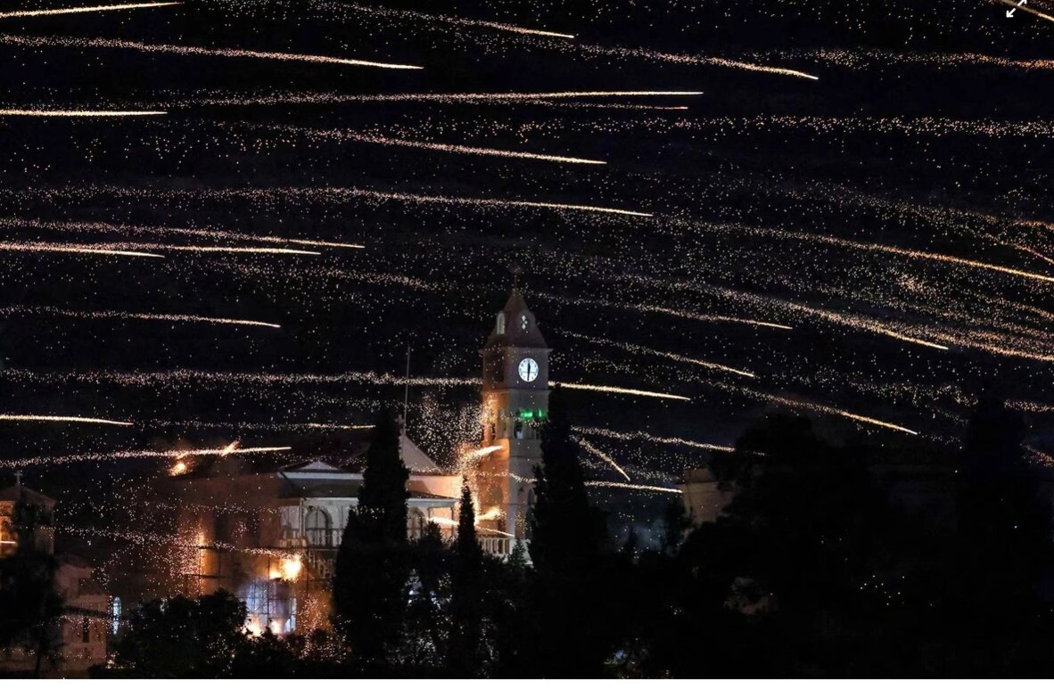 Tên lửa tự chế bay qua nhà thờ Panagia Erithiani trong lễ Phục sinh của Chính thống giáo Hy Lạp tại làng Vrontados, trên đảo Chios, Hy Lạp, ngày 19/4.