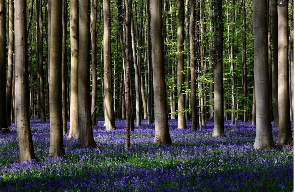 Hoa chuông xanh dại nở vào khoảng giữa tháng 4, làm cho mặt đất trong rừng chuyển sang màu xanh, tạo thành tấm thảm ở Hallerbos, còn được gọi là "Rừng xanh", tại Halle, gần Brussels, Bỉ ngày 22/4.