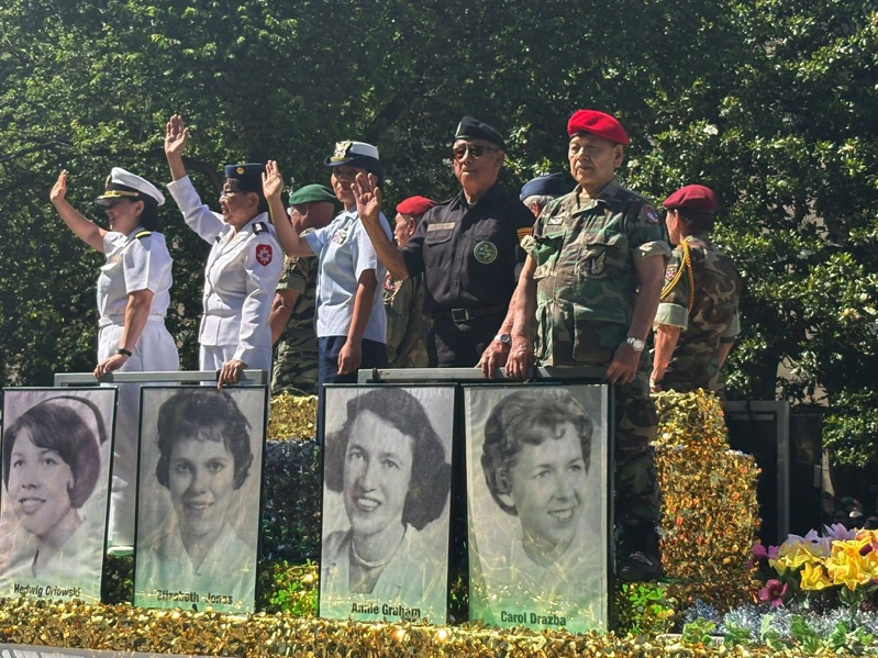 Khi phái đoàn , cầm biểu ngữ, toán quốc quân kỳ, xe hoa có những cô chú cựu chiến binh Việt Nam Cộng hòa , và hai nử quân nhân Mỹ gốc Việt , đứng lên chào và 1 xe hoa , 1 xe truck của Trường Giang , xe truck chở những lá cờ bay phất phới.