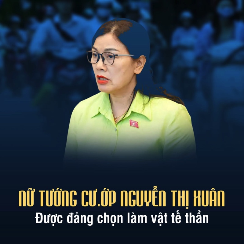 NỮ TƯỚNG CƯ.ỚP NGUYỄN THỊ XUÂN ĐƯỢC ĐẢNG CHỌN LÀM VẬT TẾ THẦN