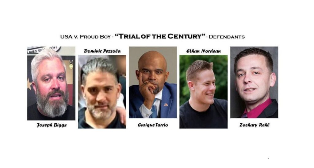 Đây là Enrique Tarrio, Ethan Nordean, Joseph Biggs, Zachary Rehl và Dominic Pezzola đấu tranh với Chính phủ Hoa Kỳ, cụ thể là chính quyền Biden và chiến dịch tàn nhẫn của họ nhằm tước đoạt quyền tự do của chúng ta và khủng bố gia đình chúng ta. Chúng ta sẽ không đứng yên trong khi các quyền của chúng ta bị chà đạp.