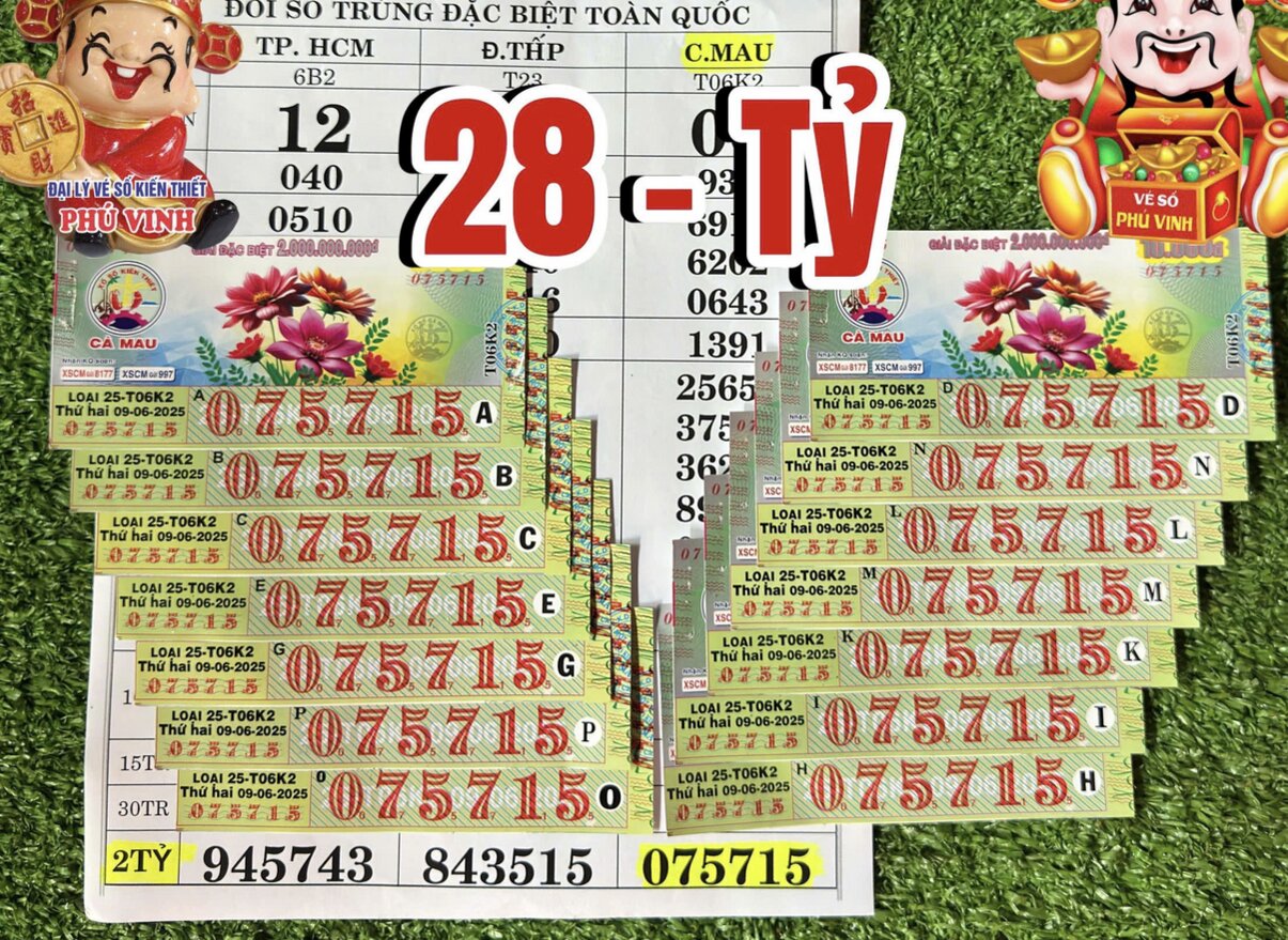 Vé số trúng giải độc đắc là của Công ty TNHH Một thành viên Xổ số kiến thiết tỉnh Cà Mau với dãy số 075715.