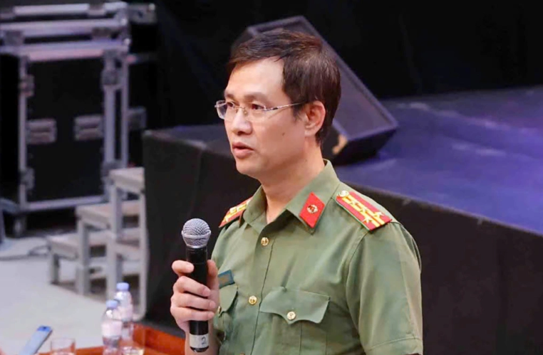 Đại diện V03 Bộ Công an phát biểu tại tọa đàm. Ảnh: Phạm Kiên