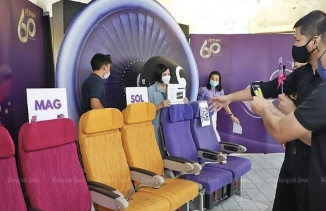 Thời điểm khó khăn nhất, Thai Airways thậm chí đă phải tháo ghế ngồi trên những chiếc máy bay cũ đă ngừng hoạt động để rao bán. Ba mươi cặp ghế với 3 tông màu chủ đạo, bao gồm tím, hồng, vàng đă được đại diện hăng bay này đăng tải trên trang Facebook TG Warehouse Sale thông qua h́nh thức livestream trực tuyến.