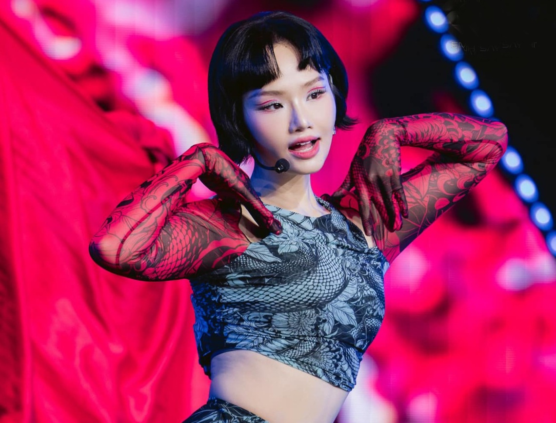 Miu Lê, 34 tuổi, thu hút trong show ca hát "Em xinh say hi" nhờ phong cách nhí nhảnh, lối giao lưu hài hước.