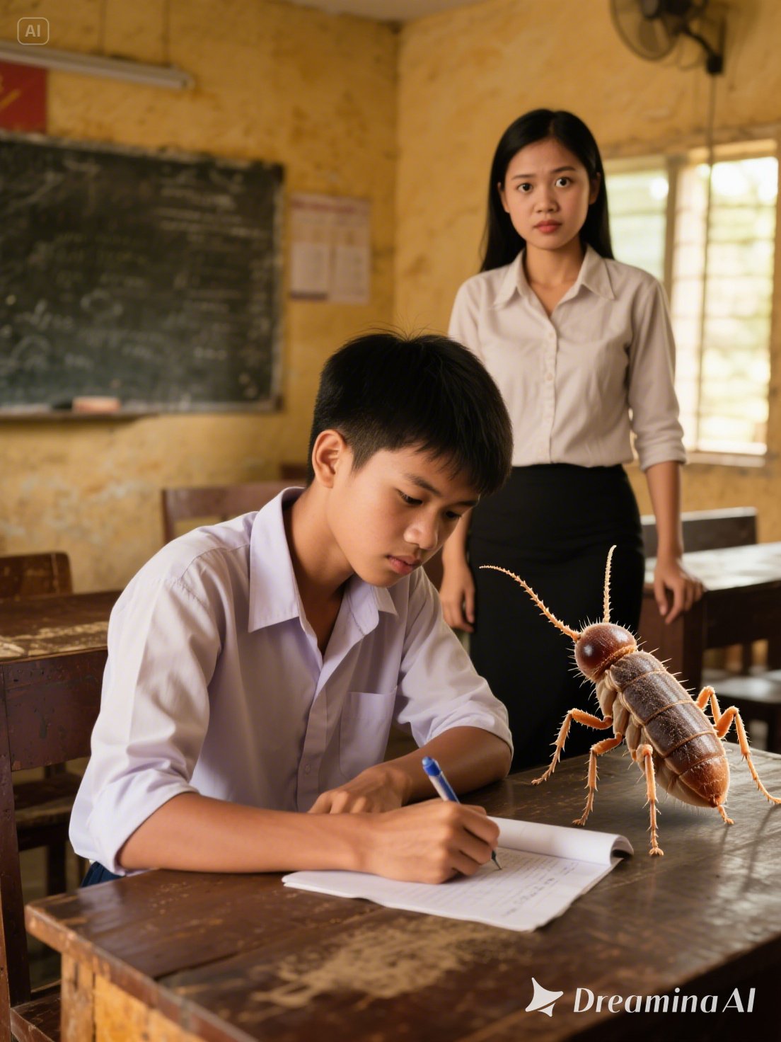 Cô giáo ra đề: Tả con vật em yêu thích. Cu Bin chọn… con rận! Tả cực kỳ chi tiết, khiến cô giáo nổi giận, bắt làm lại — lần này là tả con chó.