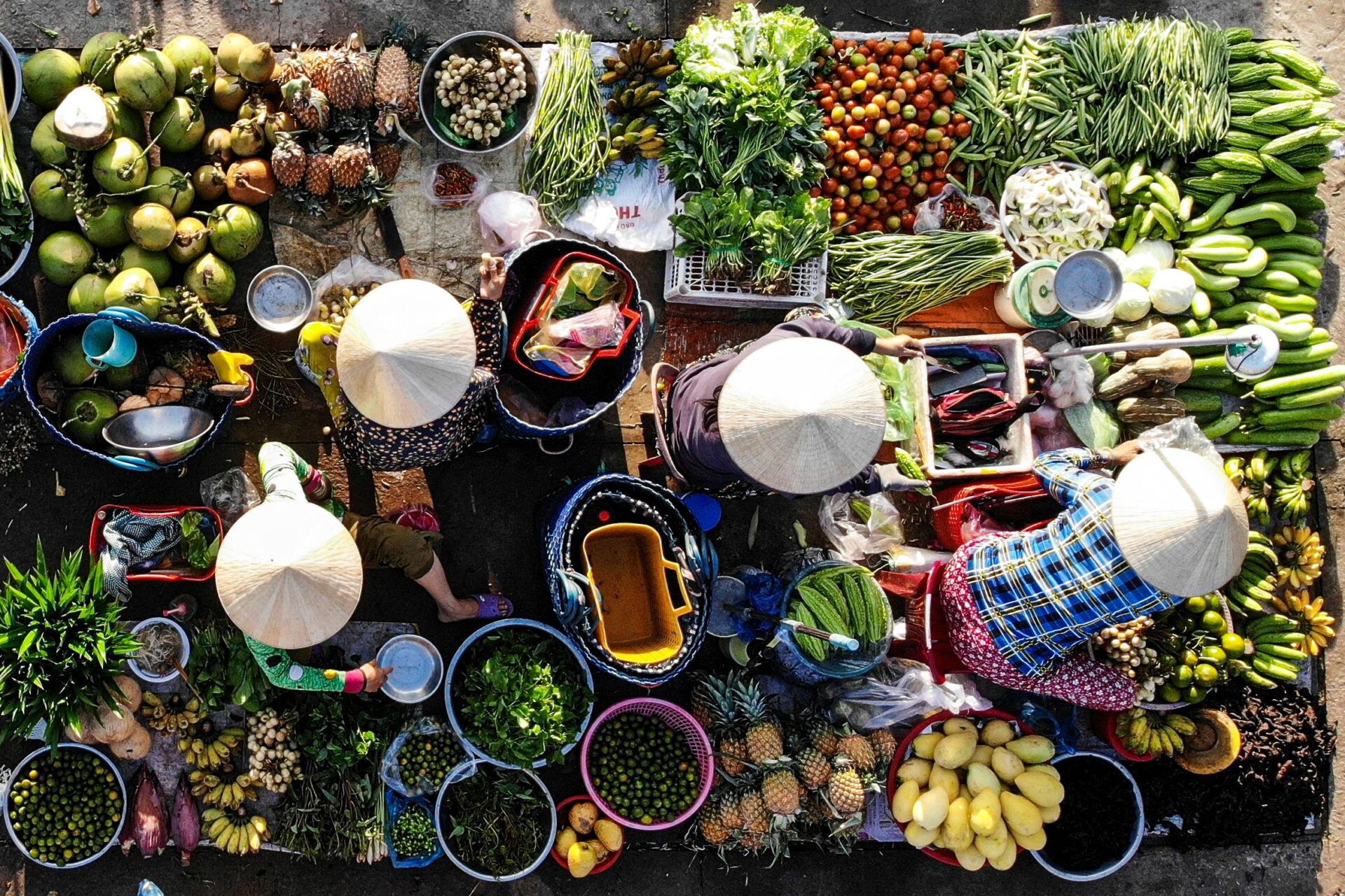 Tại các chợ dân sinh, nơi cung cấp phần lớn thực phẩm cho người dân, rau quả thường được bày bán mà không hề có tem kiểm định, thịt cá không rơ nguồn gốc, và hàng hóa không qua kiểm dịch thú y. Không ít loại rau quả có màu sắc bắt mắt nhưng có thể chứa dư lượng thuốc trừ sâu, phân bón hóa học vượt mức cho phép. Thịt heo đôi khi bị tiêm thuốc an thần để dễ giết mổ, trong khi hải sản th́ ngâm hàn the hoặc formol để giữ lâu.