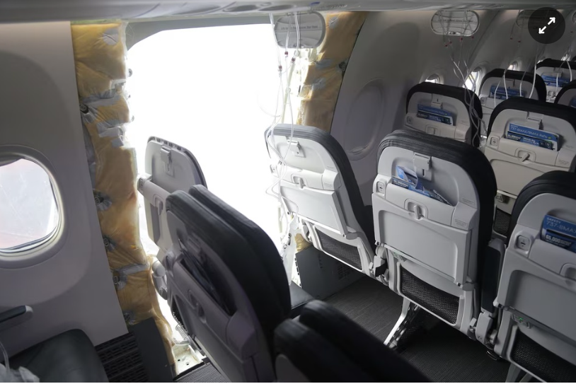 Ngày 5/1/2024, chiếc Boeing 737 MAX 9 của Alaska Airlines gặp sự cố khẩn cấp trên không khi một tấm cửa bị bung khỏi thân máy ở độ cao 4.800 mét, để lại một ô h́nh chữ nhật có kích thước bằng tủ lạnh. May mắn, máy bay hạ cánh an toàn với tất cả 171 hành khách và 6 thành viên phi hành đoàn. 7 hành khách và một tiếp viên hàng không bị thương nhẹ.