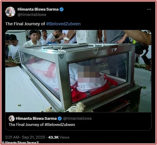 Hàng ngàn người hâm mộ đã tập trung tại Sân vận động Sarusajai ở Guwahati để tiễn đưa "ngọc quý xứ Assam". Chính quyền bang Assam cũng thông báo tổ chức quốc tang, lễ an táng sẽ diễn ra vào ngày 23/9. Đồng thời, một khu tưởng niệm Zubeen Garg sẽ được xây dựng trên diện tích đất rộng 10 bigha tại Hatimura, Kamarkuchi NC Village.