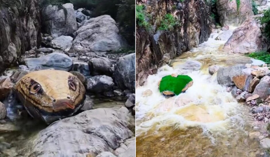 Mới đây, mạng xã hội Trung Quốc lan truyền hình ảnh "đầu trăn" khổng lồ xuất hiện giữa dòng suối trong khu thắng cảnh Ngọc Hoàng Câu trên núi Tùng Sơn (tỉnh Hà Nam).