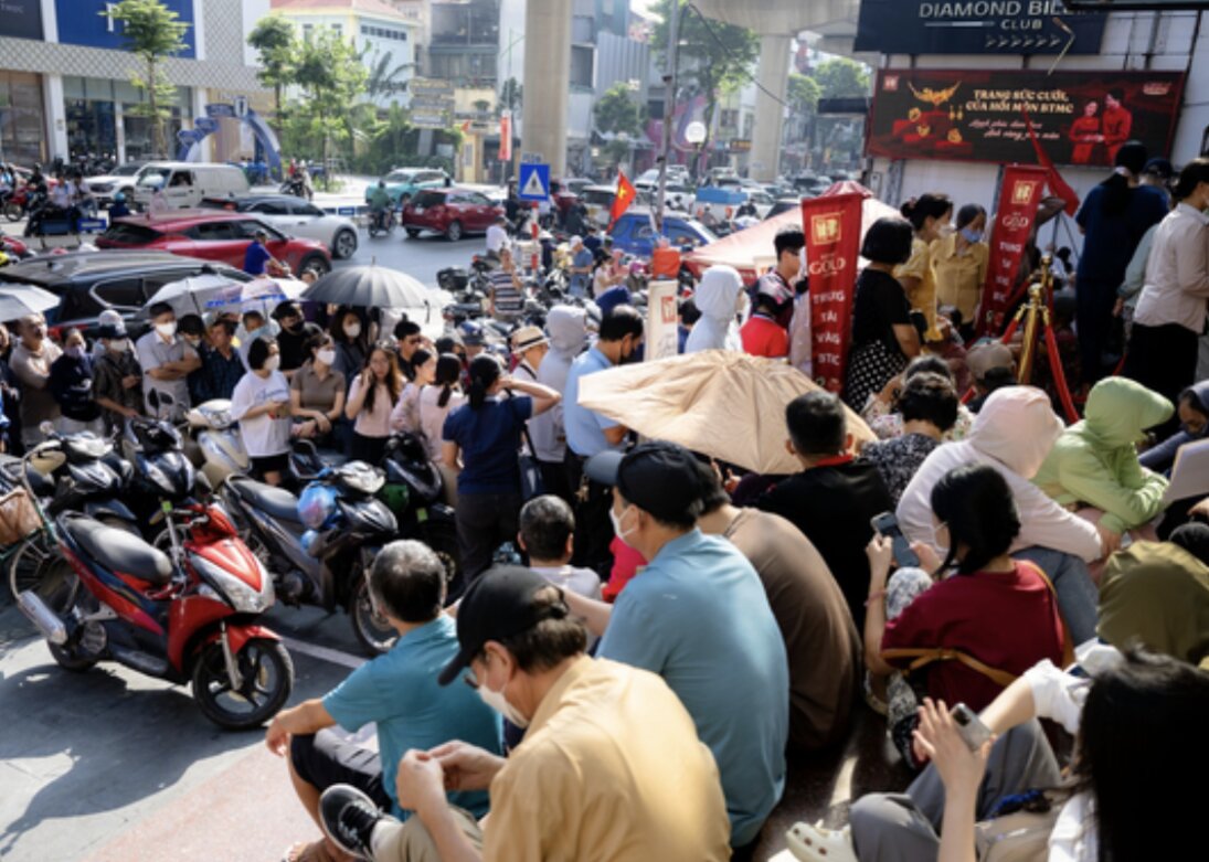 Chia sẻ trên VTC News, anh Nguyễn Văn Hoàng (ở phường Kiến Hưng, Hà Nội) cho biết đă đến xếp hàng tại cửa hàng vàng trên phố Trần Nhân Tông (phường Hai Bà Trưng, Hà Nội) từ lúc 7 giờ 30 phút. Dù đến trưa vẫn chưa được phát số do cửa hàng tạm dừng bán hàng nhưng anh Hoàng vẫn tiếp tục chờ đợi do “đằng nào cũng mất công đến rồi”.