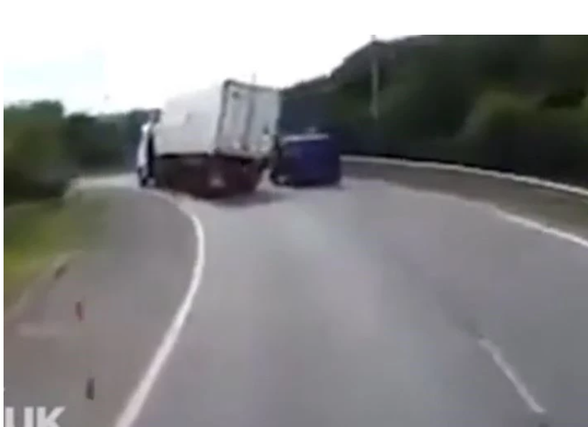 Một vụ tai nạn nghiêm trọng xảy ra trên đường M20 ở Kent, Vương quốc Anh khi xe tải bất ngờ mất lái, lật nghiêng và đè trúng ô tô con đang chạy song song. Điều khó tin là toàn bộ những người liên quan đều may mắn thoát nạn.