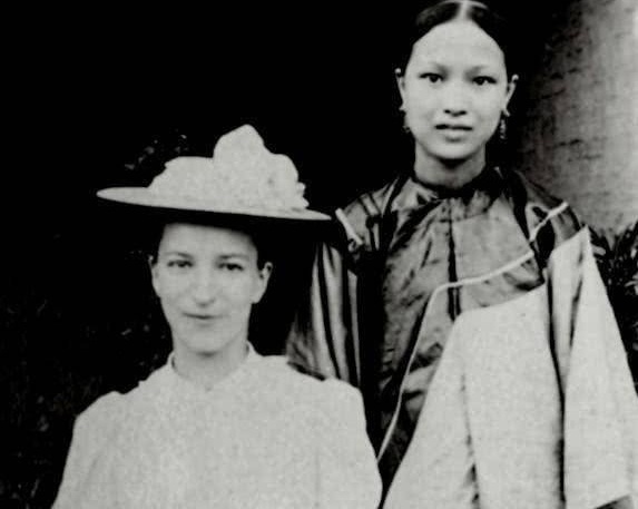 Bức ảnh chụp một phụ nữ quý tộc Trung Quốc và một người phụ nữ nước ngoài xinh đẹp, duyên dáng