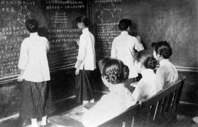Nếu như thời phong kiến, việc phụ nữ được đi học là vô cùng hiếm hoi thì vào cuối thời kỳ nhà thanh, một ngôi trường nữ sinh đã được mở cửa. Hình ảnh cho thấy xã hội đã dần biến chuyển và thay đổi rất nhiều.