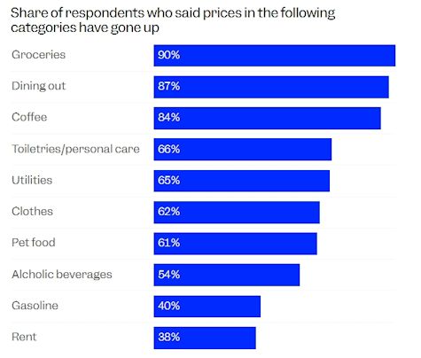 Survey respondent Jeni Garcin said she and her husband have noticed price increases for tires, coffee, and many other items.
