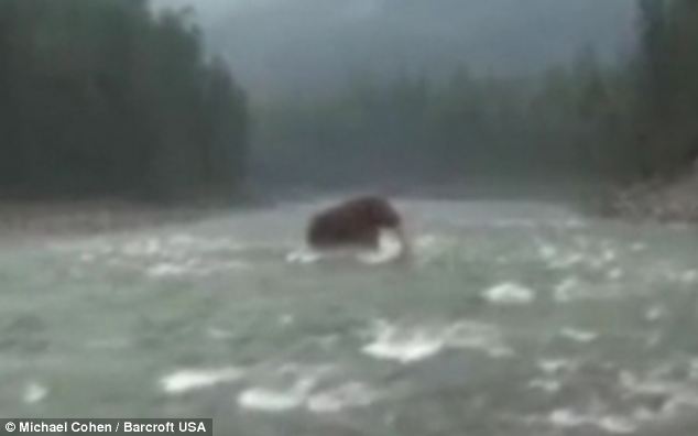 Hình ảnh của sinh vật được cho là giống voi ma mút vượt sông tại Siberia