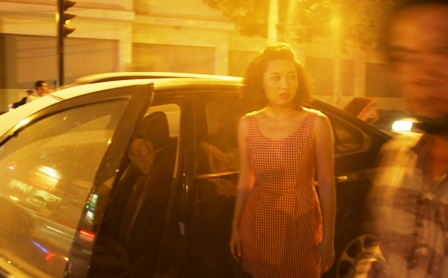 Diễn viên điện ảnh Lê Khánh bước ra từ chiếc xe bị cháy