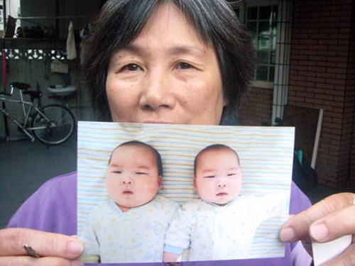 Bà Deng và hình chụp Kory cùng người anh em song sinh của bé. Ảnh: Want China Times