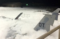 Tại nhà chứ máy bay chiến đấu trong căn cứ (hangar), do bất cẩn, một thợ hàn bất cẩn đã để tia lửa kích cho hệ thống chữa cháy tự động làm việc.