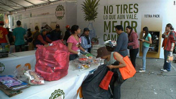 Mỗi lần họp chợ, hàng nghìn người dân trong thành phố đều mang rác thải có thể tái chế như chai lọ, đồ nhựa, thùng cũ đến khu chợ Mercado de Trueque ở công viên Chapultepec, Mexico để đổi lấy thực phẩm tươi sống.