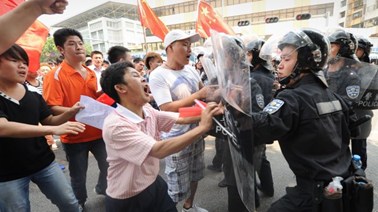 - Hôm qua 18/9 là cao trào của các cuộc biểu tình chống Nhật Bản diễn ra trên khắp Trung Quốc trong suốt hơn 1 tuần qua. Ở nhiều nơi, một số người biểu tình quá khích đã không làm chủ được bản thân lao vào đập phá bất cứ thứ gì có liên quan đến Nhật Bản trên đường đi biểu tình. Ngay cả lực lượng cảnh sát Trung Quốc cũng không ngoại lệ, chiếc xe cảnh sát nào mang thương hiệu Nhật Bản cũng bị đám đông biểu tình lao vào đập phá và lật ngửa bụng. Đã có những đụng độ xảy ra giữa cảnh sát Trung Quốc với người biểu tình, hiện tại chưa có dấu hiệu nào cho thấy biểu tình chống Nhật Bản ở Trung Quốc lắng xuống.