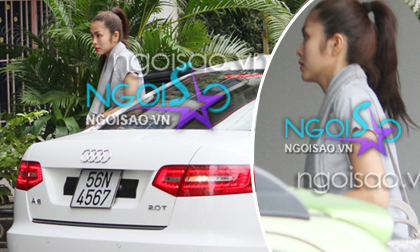 Ngoisao.vn đã 'bám đuôI' Hà Tăng khi cô lái chiếc xe Audi màu trắng quen thuộc của mình tới địa điểm để làm việc tại một toà nhà ở Q.10, TP.HCM