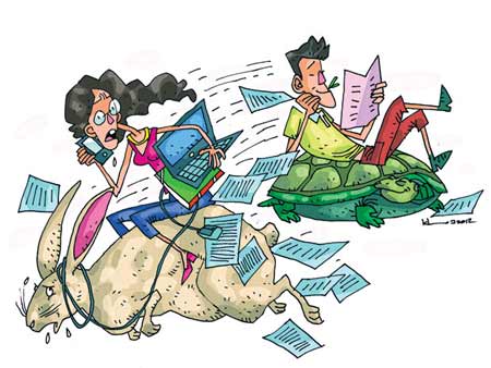 Anh thì cứ thản nhiên sống chậm như thế, cứ như mình đứng ngoài guồng cuộc sống đang xoay trở hàng ngày hàng giờ. Nửa năm nay công ty anh không có việc, anh được nghỉ không lương, nhưng cũng chẳng hề sốt ruột gì: cứ sáng đúng 7 giờ vẫn bê con sang bà ngoại gửi, sau đó cả ngày về nhà nằm đọc sách rất tận hưởng. Tôi kiếm việc đúng ngành nghề, bảo anh đi làm tạm nhưng anh nhất quyết không. Lúc nào cũng bảo chờ, tôi chẳng biết là sẽ chờ đến bao giờ nữa.