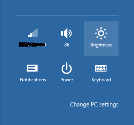 Hiển thị là một trong những thành phần chính tiêu thụ pin trên máy tính của bạn. Bạn có thể làm giảm độ sáng dựa trên nhu cầu sử dụng của mình. Để thay đổi các thiết lập, hãy kéo mạnh từ mép phải của màn hình, sau đó bấm Setting. Nếu bạn đang sử dụng chuột, rê lên góc trên bên phải của màn hình, di chuyển con trỏ chuột xuống, sau đó nhấp vào Setting. Chạm hoặc nhấn chuột vào logo Brightness để thực hiện thay đổi mà bạn muốn. Một số máy tính cũng có nút chuyên dụng để thay đổi độ sáng màn hình.