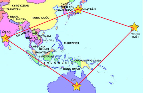 |  | Úc, Ấn Độ, Nhật Bản cùng bang Hawaii của Mỹ tạo thành một “liên minh kim cương” để bảo vệ cho cộng đồng hàng hải trải dài từ Ấn Độ Dương đến Tây Thái B́nh Dương