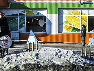 Một cửa hiệu ở Chelyabinsk bị hư hại do lực của vụ nổ sao băng gây ra.
