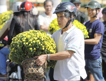 Khệ nệ đưa hoa lên xe máy