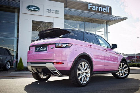 Là một trong số rất ít Range Rover Evoque trên thế giới sơn màu hồng, đây còn là xe đầu tiên được chính đại lý của Range Rover sơn hồng với mọi chi tiết khác gần như nguyên bản.
