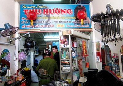 Tiệm uốn tóc Thu Hương, nơi xảy ra án mạng vì ghen với vợ cũ và ông Việt kiều. (Hình: báo Pháp Luật Việt Nam)