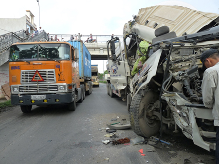 Vào lúc hơn 23 giờ đêm 5/6, tại khu vực gầm cầu vượt Đông Hải, trên đường Nguyễn Bỉnh Khiêm, phường Đông Hải 2, quận Hải An, TP Hải Phòng đã xảy ra vụ tai nạn giao thông kinh hoàng giữa xe bồn chở gas và xe container. Vụ tai nạn khiến đầu chiếc xe bồn nát bét nhưng tài xế đã thoát chết một cách thần kỳ. Đoạn đường nơi xảy ra tai nạn cũng ách tắc trong nhiều giờ; đến 8h sáng nay, giao thông vẫn chưa trở lại bình thường.