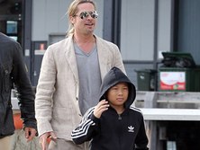 Hôm 11/6, hai bố con lại tiếp tục hành trình công chiếu phim ở Seoul, Hàn Quốc. Brad Pitt và Pax Thiên xuất hiện tại sân bay quốc tế Kimpo.