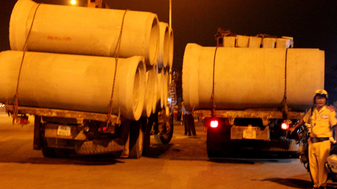 Hai xe bị lập biên bản vì chở quá tải rạng sáng 27-6 - Ảnh: Mậu Trường