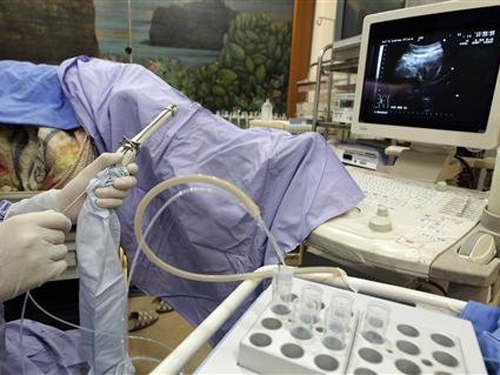 Quá trình trích xuất trứng để đông lạnh. Ảnh: Reuters
