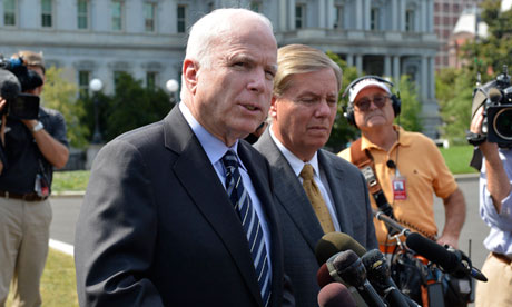 Phát biểu khi cùng có thượng nghị sỹ Đảng Cộng hoà Lindsey Graham đứng ngay cạnh, ông John McCain nói rằng nếu Quốc hội Mỹ dùng quyền lực của ḿnh để bác đề xuất trừng phạt quân sự Syria sẽ làm cho "uy tín của nước Mỹ, sự nể sợ của đối phương cũng như ảnh hưởng với thế giới bị suy giảm. Điều này sẽ xảy ra đối với tổng thống đương nhiệm và trong cả tương lai".