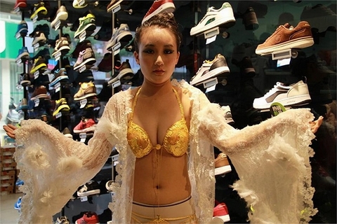 Được biết, bộ nội y làm hoàn toàn bằng vàng với hình trạm trổ tinh xảo và đẹp mắt có giá trị khoảng 1 tỷ VNĐ.