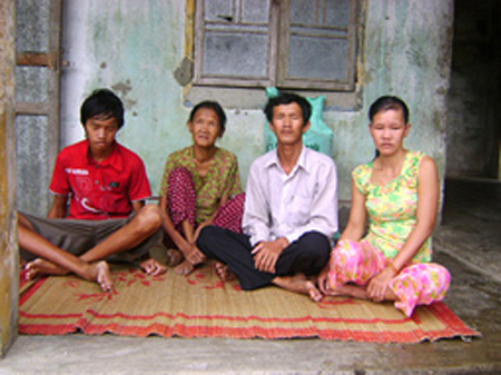 Thời gian rảnh, ông lại đi làm thuê để kiếm tiền nuôi con. Mới gần 60 tuổi nhưng phải bươn chải mưu sinh nuôi cả gia đình mù lòa nên trông ông Hùng già, gầy gò, lưng còng, tóc bạc. Gần đây, ông lại bị mắc chứng bệnh thấp khớp, đau dạ dày nhưng vì lo cho vợ, cho con nên ông đành nhắm mắt để “liều”, mặc cho bệnh tật hành hạ, đọa đày. Vụ mùa vừa qua, hai sào lúa ruộng khoán gần như mất trắng nên hiện nay, nguồn sống của cả gia đình ông Hùng chỉ biết dựa vào đống lúa trắc, trộn lẫn lép đang phơi trước hiên nhà. Mùa mưa bão năm nay, chắc chắn gia đình nghèo khổ, mù lòa này sẽ bị đói.“Thấy 4 đứa con còn trẻ mà bị mù lòa, lòng tôi đau như cắt. Mấy năm trước, các đoàn từ thiện biết hoàn cảnh gia đình tôi, hỗ trợ tiền để đưa các con đi chữa bệnh nhưng đến đâu, bác sĩ cũng lắc đầu. Trong 5 người bị mù mắt thì bà Lộc, Loan và Nga được chẩn đoán bị teo dây thần kinh thị giác. Còn thằng Thành, Thật bị rung nhãn cầu do ảnh hưởng từ chất độc DTT ”, ông Hùng cho biết.