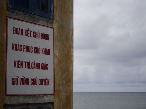 Đặt chân lên hòn đảo đầu tiên của Trường Sa (Song Tử Tây), nhìn những khẩu hiệu sơn đỏ xuất hiện ở rất nhiều nơi trên đảo đã khiến tôi không kìm được cảm xúc và quyết tâm "săn" bằng được những hình ảnh về khẩu hiệu trên đảo. Mỗi khẩu hiệu được đọc lên tôi đều cảm giác như tim mình hừng hực khí thế hoặc càng tăng thêm tình yêu biển đảo Việt Nam.