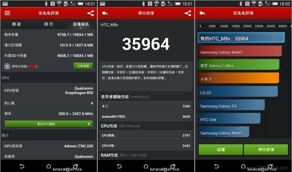 Về mặt phần hiệu năng, HTC One M8 cũng đang đứng đầu các bảng xếp hạng với số điểm Benchmark cao hơn LG G Flex, LG G Pro, Galaxy Note 3, và Xperia Z. Được biết máy có 2 phiên bản khác nhau dành cho thị trường châu Á và Mỹ. Phiên bản được bán ra ở Mỹ, châu Âu, châu Phi và Trung Đông sử dụng chipset Snapdragon 801 tốc độ 2,3 GHz, còn bản bán ra tại châu Á có tốc độ xử lý 2,5 GHz