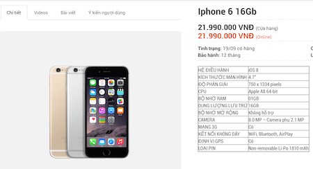 Khảo sát nhanh tại một số cá nhân tự phát xách hàng từ nước ngoài và rao bán trên các trang rao vặt, mức giá bán c̣n được rao bán thấp hơn rất nhiều, nhiều cá nhân bán lẻ này rao bán chỉ ở mức 19,5 đến 20 triệu đồng cho 1 phiên bản iPhone 6, trong khi mức giá 21 triệu đồng sẽ có ngay phiên bản iPhone 6 dung lượng 64 GB.
