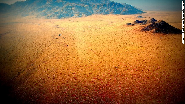 Từ không khí, sa mạc Namibia có vẻ như nó đang bị một trường hợp xấu của bệnh thủy đậu. Trải rộng trên 1.100 dặm của một dải hẹp ở một nơi cằn cỗi, hay c̣n gọi là ṿng tṛn cổ tích. Những miệng núi lửa khá lớn có đường kính 10 đến 65 feet, là đại diện cho một trong những bí ẩn lớn nhất của tự nhiên.